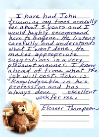 We've used this company several times to trim our trees and to remove a dead tree. He is very efficient and completely cleans up the debris. -- Cathy Hoenecke